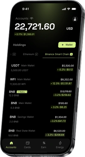 The WFI token is the core asset of the WeFi ecosystem. It powers payments, rewards, benefits, and access to all services inside the decentralized Deobank. Every major feature — from cards and savings to mining and Energy boosts — relies on WFI as its main utility token.